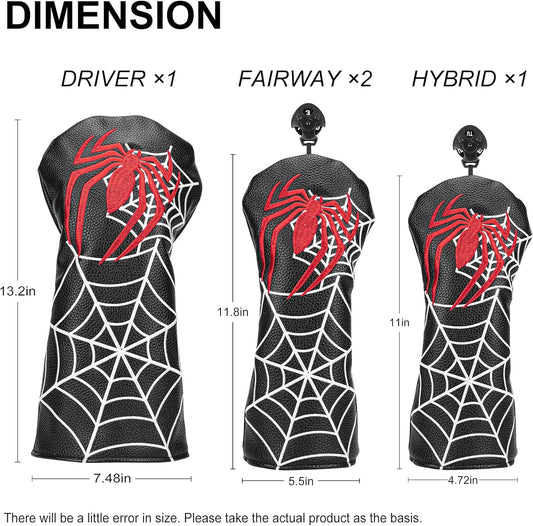 Golf Head Covers for Woods Fits All Drivers Golf Clubs Premium Leather Spider Embroidery 1 3 5 UT...