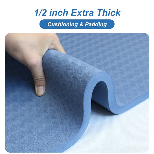 Large Exercise Mat 1/2" Thick TPE Foam 78"X51" Yoga Cardio Heavy Duty Workout Floo...