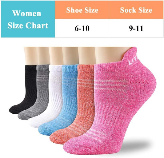 Womens Ankle Socks 6-Pairs Athletic Running Sport Socks with Cushioned Sole